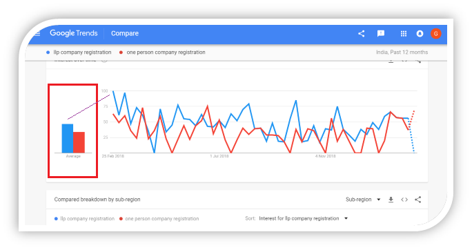 As shown in the trends above, the searches for Private Limited Company registrations are more as compared to LLP firm registrations in past 12 months.